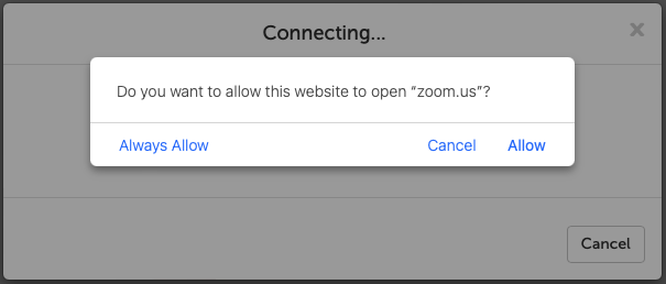 8. Safari will ask if you want to allow Zoom to open. Make sure you click "Allow" (or "Always Allow" for a smoother process in the future).