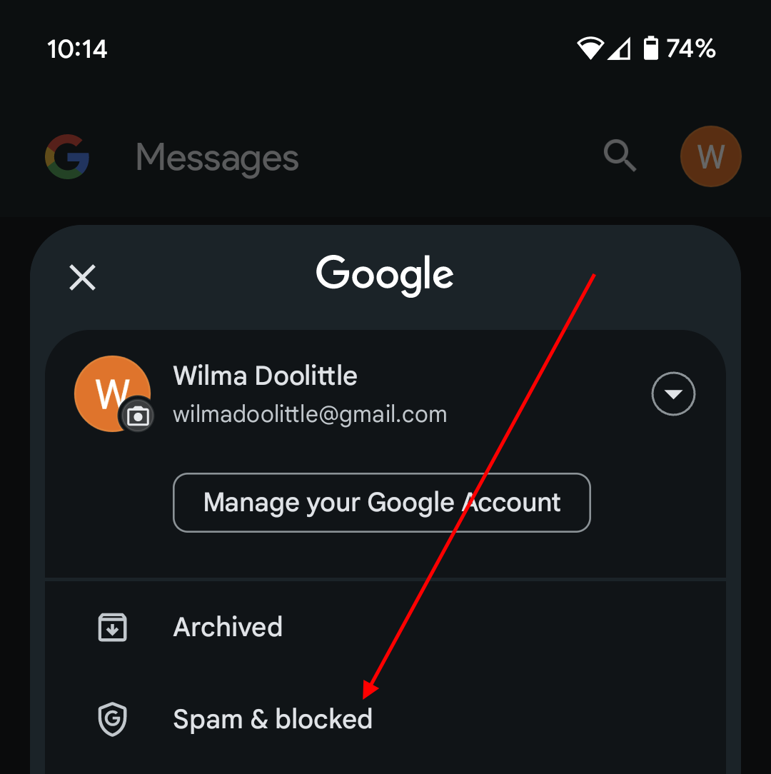 3. In the menu that appears, tap on "Spam & blocked".